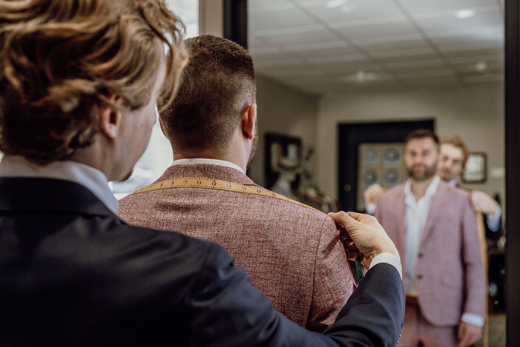 Ce qui se passe ici : Prise de mesures complète du corps Analyse de la posture, de l’équilibre, de la forme des épaules et des mouvements Sélection des tissus (moulins italiens et anglais) Personnalisation : boutons, doublure, couture, ajustement main gauche / main droite